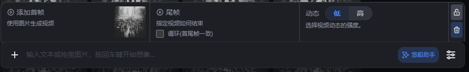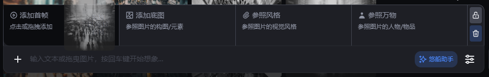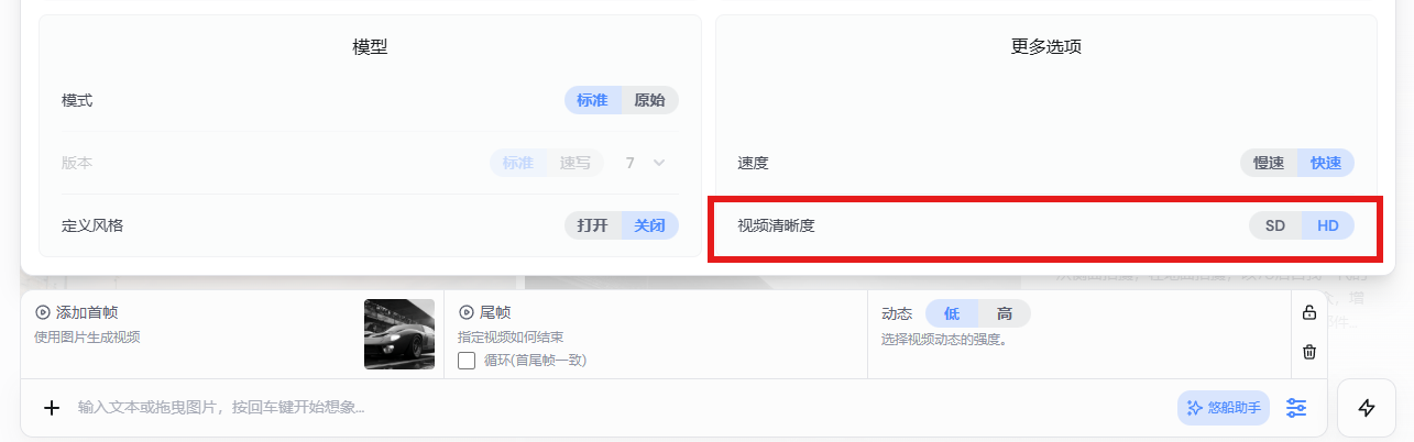 把图像添加到开始想象栏的【添加首帧】区域后,会出现更多视频选项。